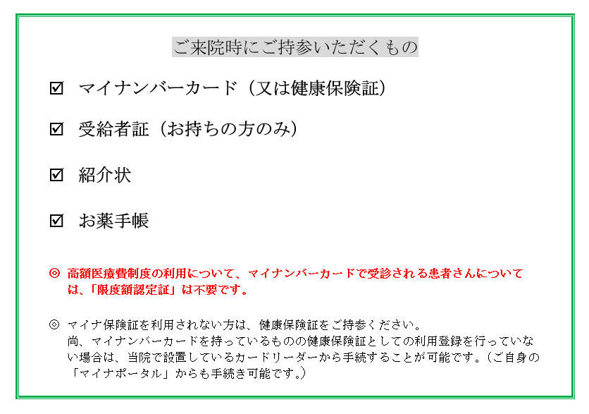 ご不明な点がございましたら、診療時間内に受付までお問い合わせください。