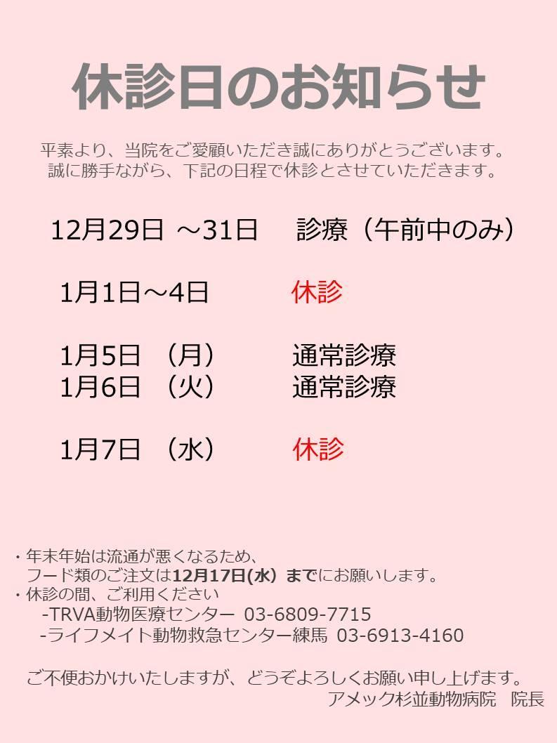 ■2025年 12月 20日 12月31日まで診療致します。