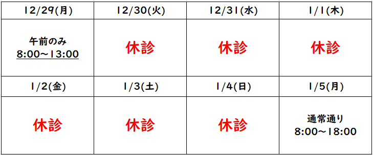 年末年始の診療について