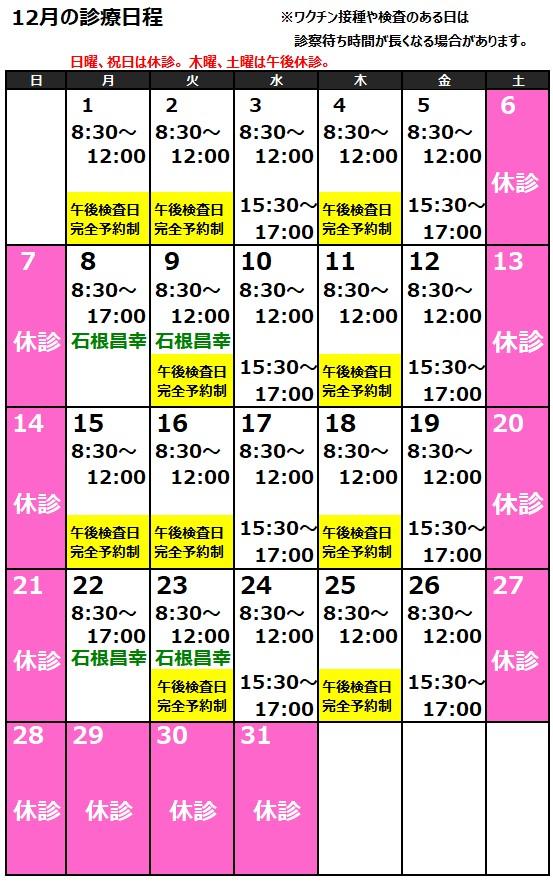 ■2025年 11月 18日 12月の診療受付時間と年始の診察お知らせ