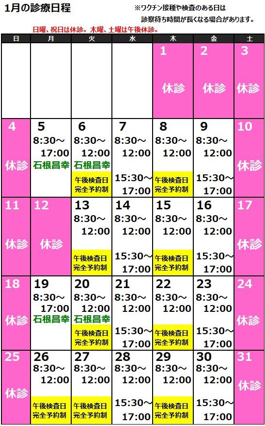 1月の診察受付時間のお知らせ