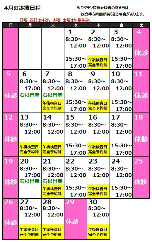 ■2026年 3月 17日 4月の診察受付時間のお知らせ