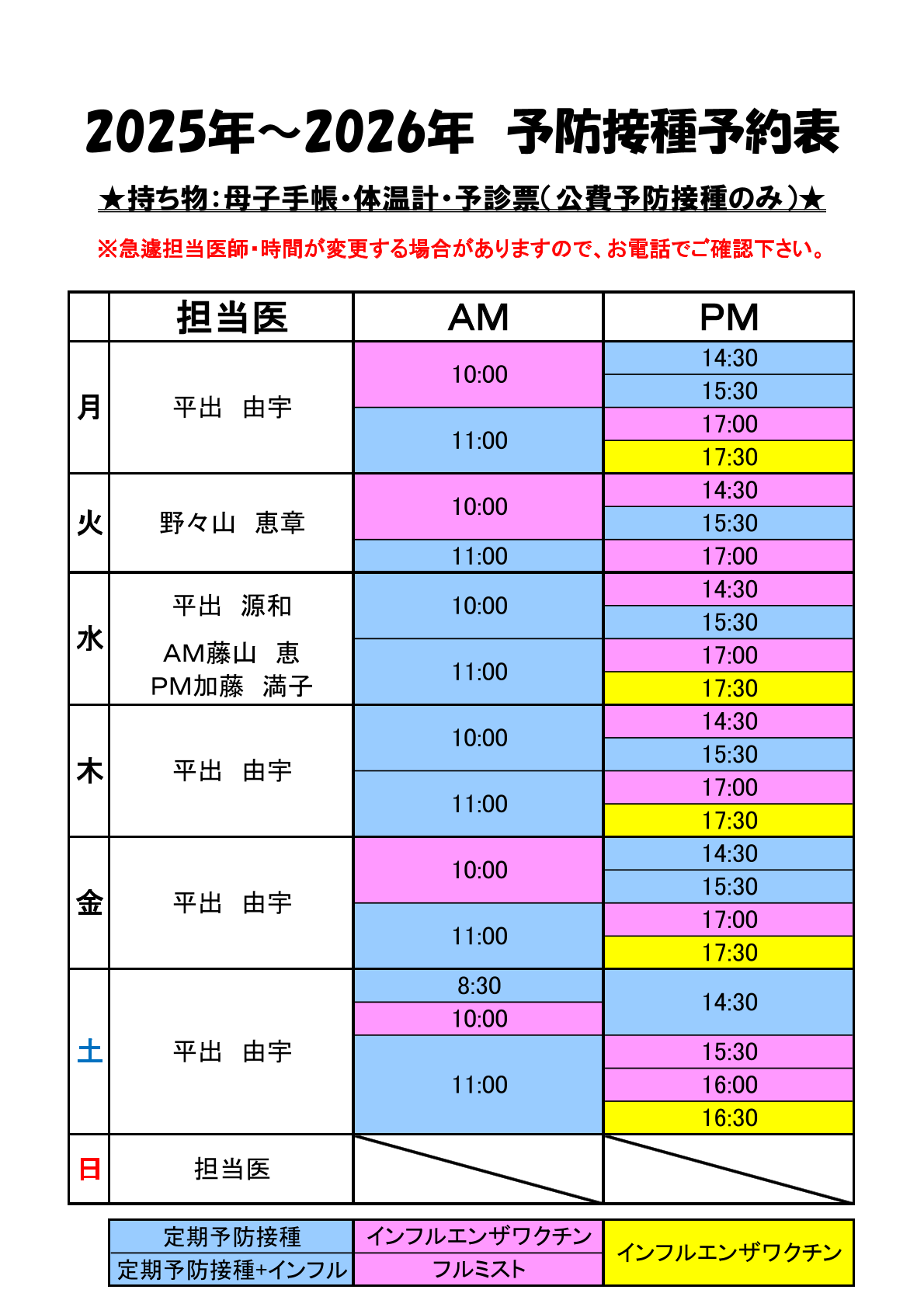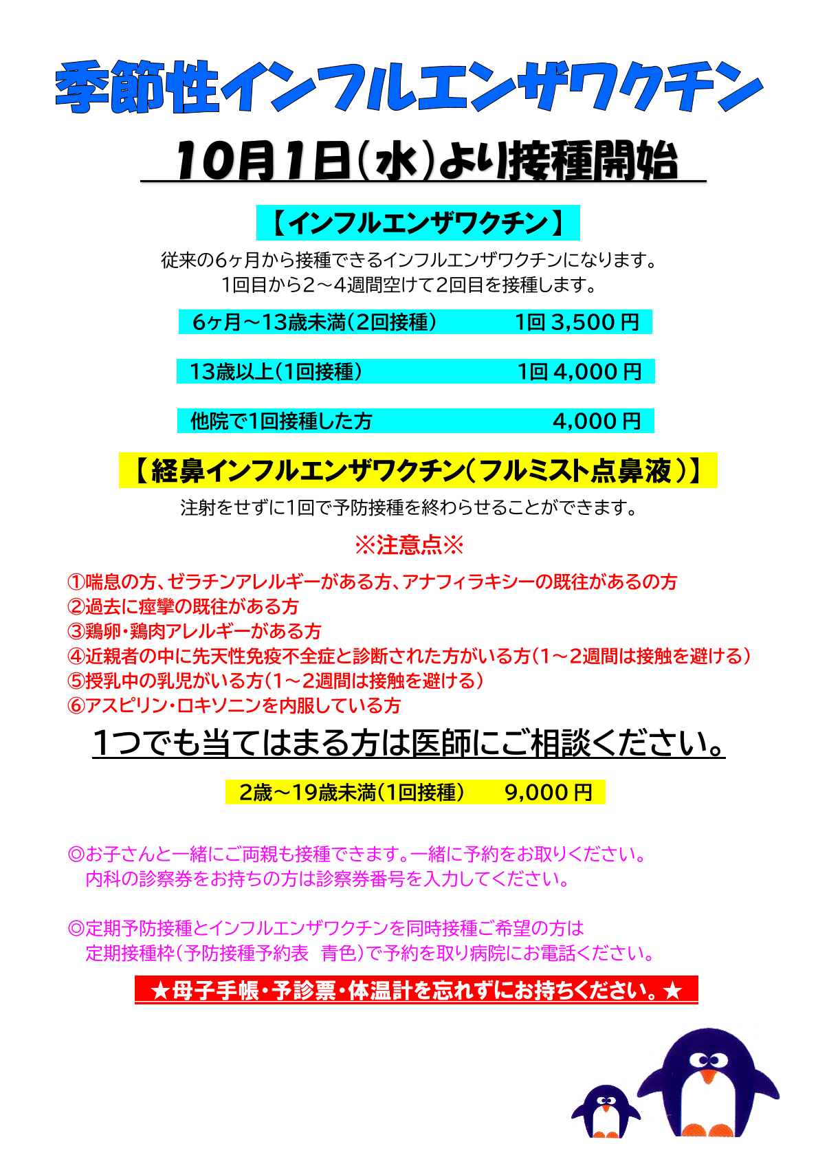 函南平出クリニック 小児科は、従来通り10月1日(水)よりインフルエンザ予防接種を開始いたします。